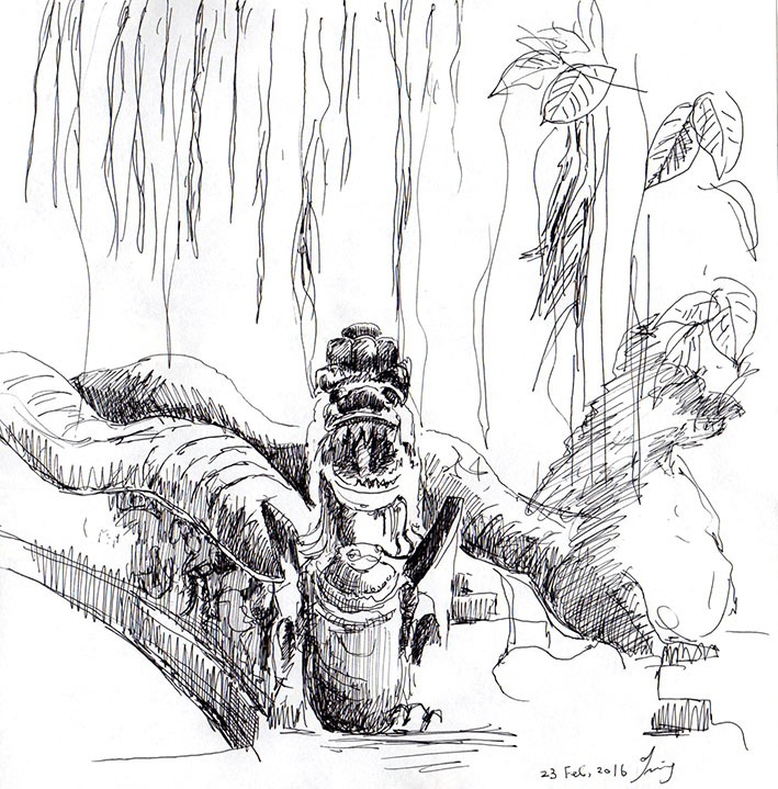 The bridge of Nāga and Ficus tree in the Monkey Forest. There was a Balinese couple taking wedding photos in front of this!